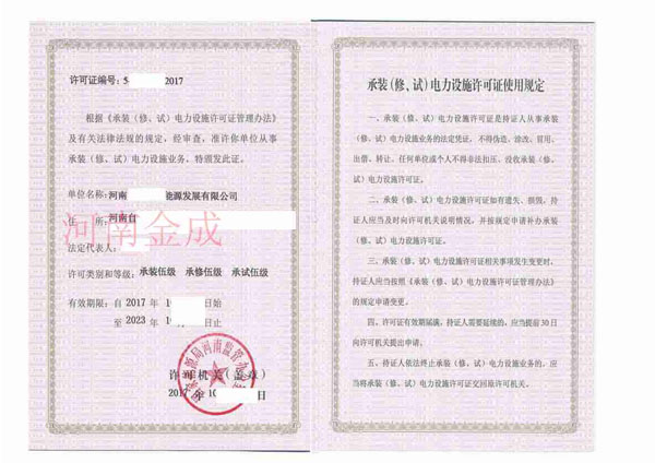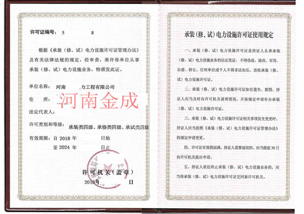 • 承裝(修、試)電力設施許可證